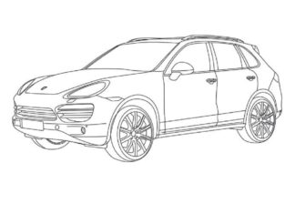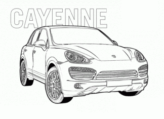 Pokoloruj samochód z rysunku oraz napis nad nim. „Cayenne” to nazwa tego samochodu marki Porsche. Aby rysunek był jeszcze ciekawszy pokoloruj każdą literkę inną...