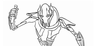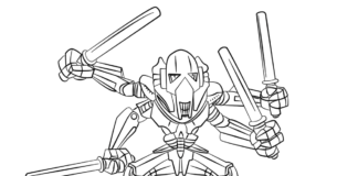 Na ilustracji widzimy Generała Grevious, który włada mieczami świetlnymi. Weź kredki w ręce i pokoloruj postać z Gwiezdnych Wojen...