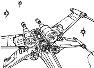 Ilustracja przedstawia statek kosmiczny z Gwiezdnych Wojen. Czy wiesz może kto latał tym pojazdem? Sięgnij po kredki i pokoloruj ilustrację.