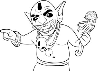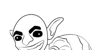 Postać na obrazku będzie wyzwaniem do pomalowania. Jest to wielki goblin, cały umięśniony i potworny. Zwróć uwagę na jego ogromny język. Możesz domalować mu...