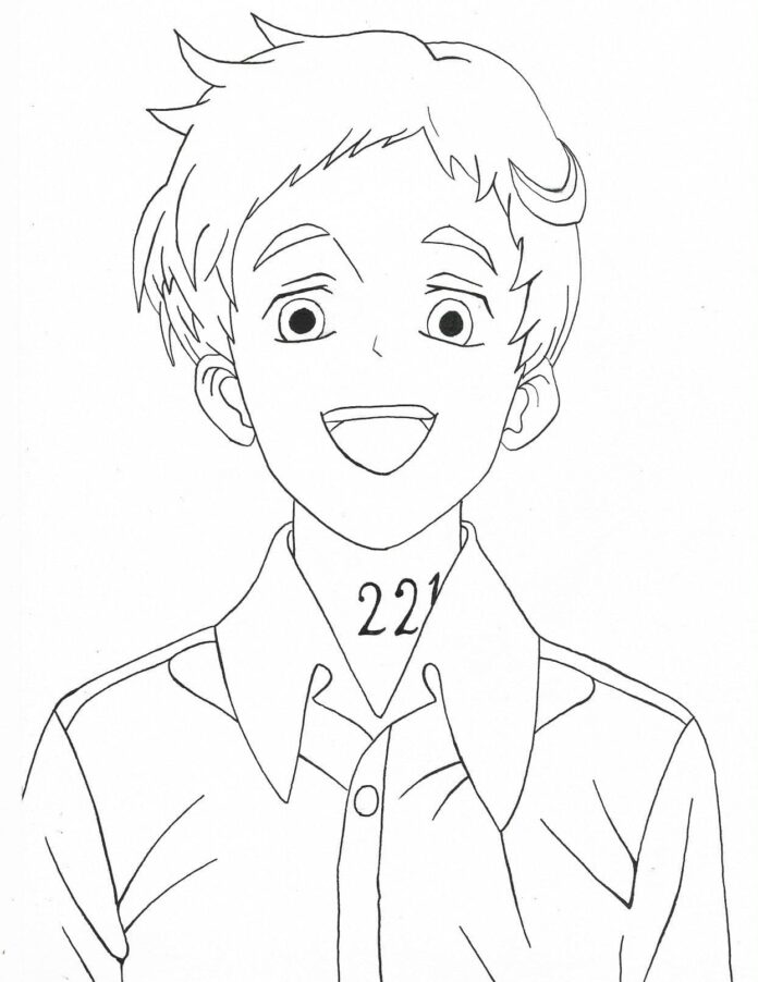 To jeden z głównych bohaterów popularnej mangi i anime o tytule The Promised Neverland, o imieniu Norman. Jest bardzo inteligentnym i bystrym chłopcem. Był głównym pomysłodawcą ucieczki z sierocińca. Zaplanował wszystko krok po kroku i zrealizował plan z przyjaciółmi. Urodzony strateg i istny geniusz. Pokoloruj Normana.