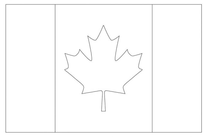 Flaga Kanady jest w kształcie prostokąta, która jest podzielona na trzy pionowe pasy, w tym pas biały jest szerszy od dwóch pasów czerwonych na zewnętrznych częściach flagi i jest w kształcie kwadratu. Na środku białego pasa znajduje się czerwony liść klonu o jedenastu wierzchołkach. Biel i czerwień są oficjalnymi kolorami Kanady. Postaraj się nie wychodzić za linię podczas malowania tego obrazka.