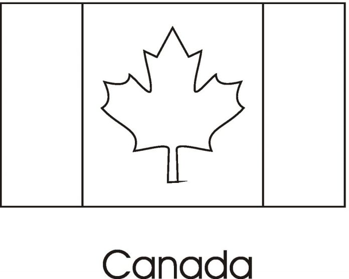 Flaga Kanady jest prostokątem podzielonym na trzy pionowe pasy: czerwony, biały i czerwony, z umieszczonym w centrum, na białym pasie, czerwonym liściem klonu. Kolory biały i czerwony są oficjalnymi kolorami Kanady. Kolor czerwony symbolizuje siłę, męstwo i pamięć o poległych kanadyjskich żołnierzach. Kolor biały symbolizuje pokój i uczciwość. Pokoloruj obrazek ulubionymi kredkami.
