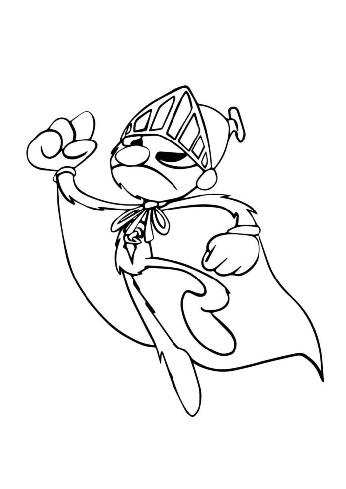 W dzisiejszej kolorowance widzimy potwora który na całym ciele ma futro. Ubraną ma on pelerynę jak prawdziwy super bohater. Na głowie założony ma hełm rycerski. Postać ma poważną i dumną minę. Podniesioną ma prawą dłoń jak super-man. Postać lata w powietrzu.