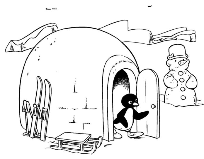 Na obrazku widać, jak pingwin wychodzi z igloo. Ciekawe, dokąd się wybiera? Pewnie będzie jeździł na nartach, albo sankach. Chciałbyś mu potowarzyszyć? Nie pozwól na to, aby pingwinek sam spędzał czas. Weź do ręki zatem ulubione farby i pomaluj rysunek z dbałością o każdy szczegół. Przeżyj niesamowitą przygodę!