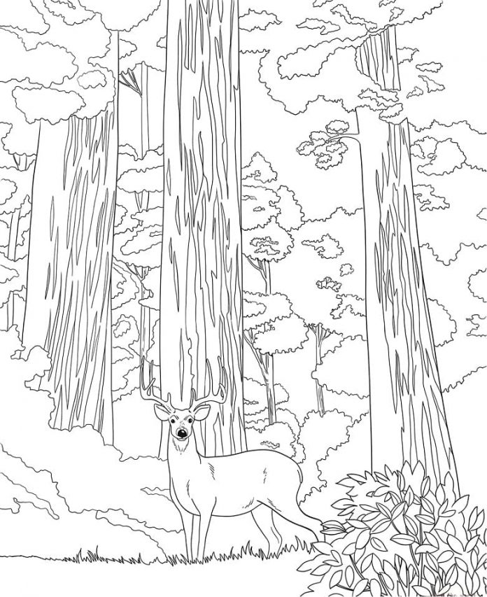 KolorowankiKolorowanki KaliforniaJeleń w parku wśród drzew