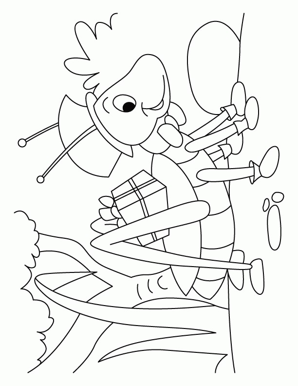A ten konik polny chyba wybiera się na urodziny. Niesie pięknie zapakowany prezent na swoich skrzydłach. Jak myślisz, co jest w środku i kto zostanie obdarowany tą niespodzianką? Myślę, że skoro nasz bohater wybiera się na imprezę urodzinową, to zdecydowanie trzeba mu dodać kolorów. Przecież nie może pokazać się innym gościom taki bezbarwny.