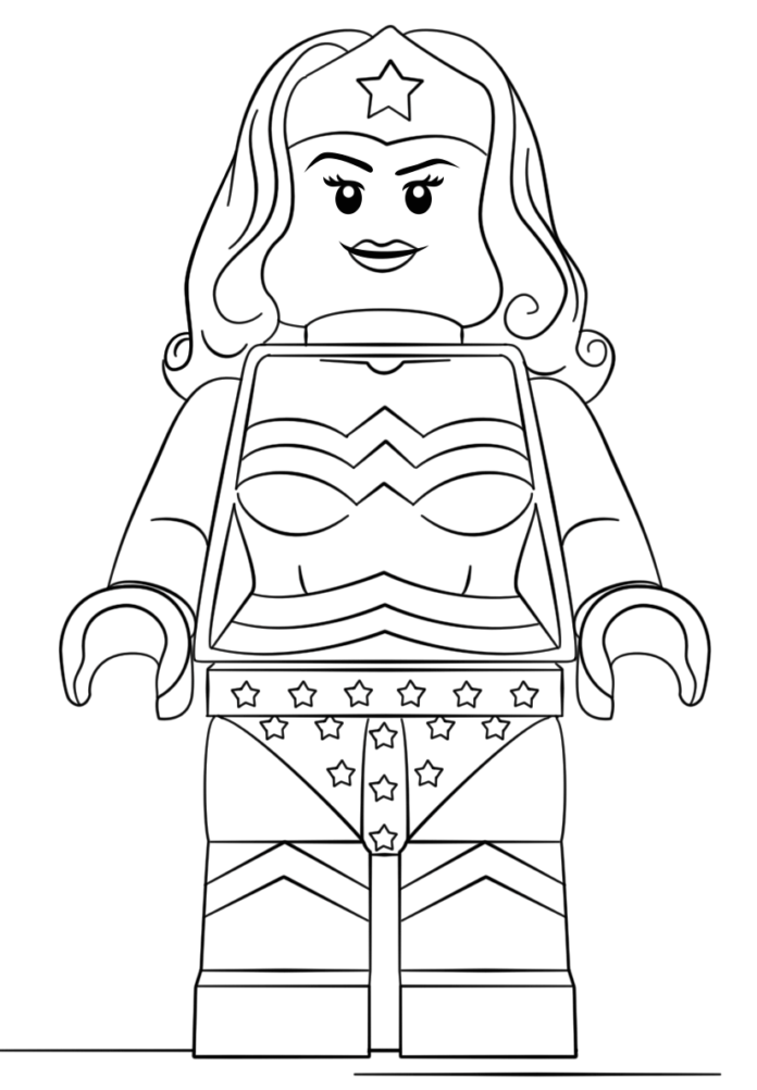Od pewnego czasy Lego tworzy swoje postacie z bohaterami z różnych bajek czy też kreskówek oraz gier. Tutaj właśnie taka sytuacja ma miejsce ponieważ dzielna wojowniczka Wonder Women występuje jako ludzik Lego. Czy jest ona podobna do prawdziwej wersji to już sami oceńcie. Obrazek naprawdę jest całkiem fajnych i sporych rozmiarów co daje nam gwarancję, że się go będzie fajnie kolorować.