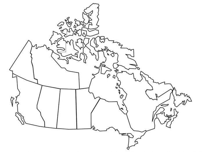 Kanada to bardzo duży kraj. Jeśli interesujesz się nieco geografią i chcesz poszerzać o niej swoją wiedzę, z tego obrazka możesz dowiedzieć się, jak wygląda mapa Kanady. Jeśli postarasz się kolorować bardzo dokładnie i użyjesz odpowiednich kolorów, sprawisz, że mapa będzie wyglądać jak prawdziwa. Powodzenia!