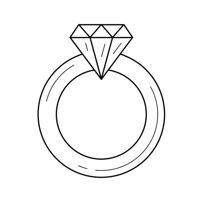 Lubisz pierścionki? Ten pierścionek nie jest dla każdego. Jest wyjątkowy ponieważ wręcza się go drugiej osobie, kiedy prosi się ją o rękę. Dlatego właśnie nazywa się go pierścionkiem zaręczynowym. Pokoloruj pierścionek z rysunku tak aby wyglądał jeszcze piękniej. Możesz użyć swoich ulubionych kredek.