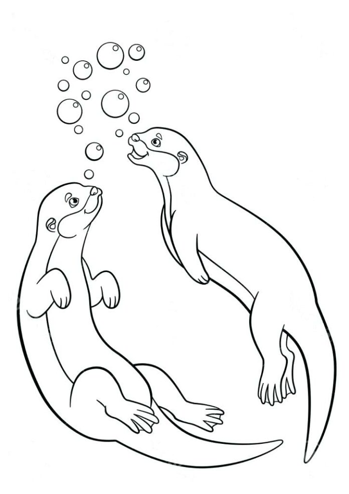 Przed wami na obrazku dwie wydry które są bardzo dobrymi pływakami. Wydry możecie spotkać również w Polsce. Ciekawe co wydry na obrazku teraz robią. Pływają po prostu czy może rozglądają się za pożywieniem. Pokolorujcie obrazek najlepiej jak potraficie.