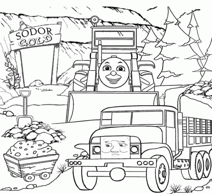 Obrazek dla chłopców. Nie tylko same maszyny kolejowe występują w bajce o Tomku. Jak widzimy w odcinkach bajki pojawiają się również inen pojazdy samochodowe. Widzimy tutaj spych jak również ciężarówkę które to stoją obok kopalni. Widzimy także obok mały wagonik kolejki z kopalni.