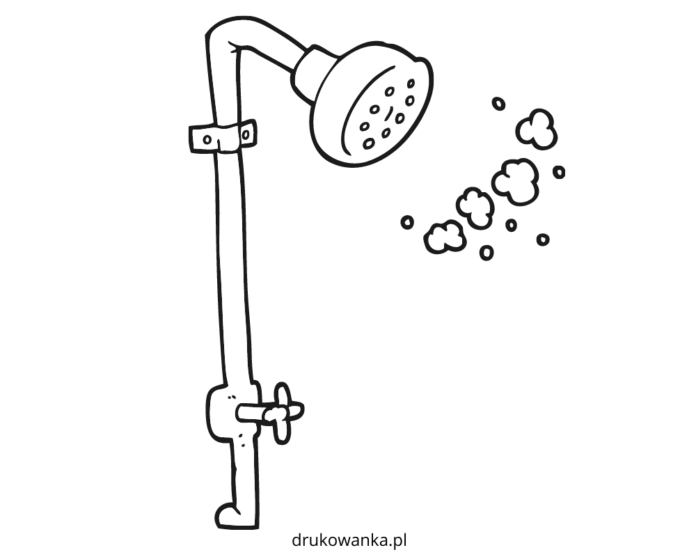 W zależności od upodobań niektórzy mogą mieć w swoich domach prysznic lub wannę. Pod prysznicem myje się na stojąco, natomiast w wannie można się położyć. Pokoloruj prysznic z powyższego rysunku i baw się dobrze. Możesz dorysować inne przypory niezbędne pod prysznicem takie jak: gąbkę do mycia lub mydło.