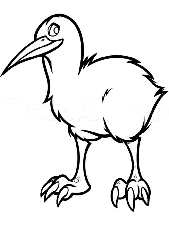 Ptak kiwi ma charakterystyczny długi dziob, który jest elastyczny, a na jego końcu znajdują się otwory nosowe. Są to jedyne ptaki, których nozdrza znajdują się na końcu dzioba. Jego nogi są krótkie, ale za to dobrze umięśnione. Dzięki nim mogą szybko biegać, kopać nory oraz walczyć z przeciwnikami. Użyj swoich ulubionych kredek do pokolorowania obrazka.