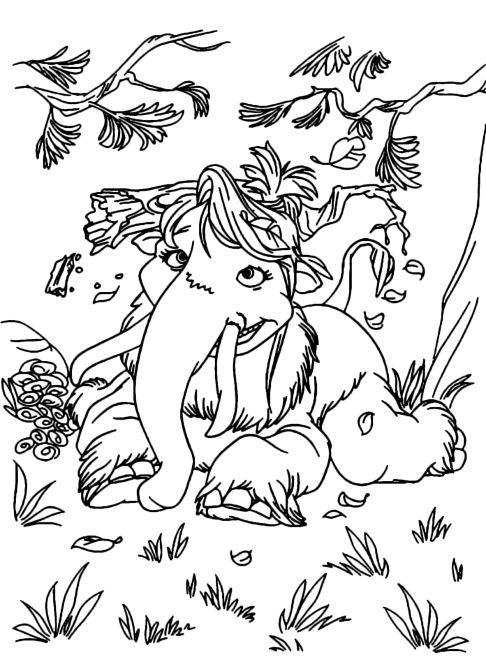 Widoczna na obrazku Brzoskwinka to bohaterka bajki Epoka Lodowcowa, którą na pewno dobrze znasz. Pokoloruj Brzoskwinkę wylegującą się pośród roślin i krzewów, odpoczywającą po całodniowej wycieczce z rodzicami – Mańkiem i Elą. A czy Ty lubisz podróże z rodzicami?