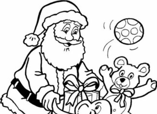 Na obrazku widzimy Świętego Mikołaja, który co roku przynosi nam nasze wymarzone prezenty. Jak widzimy prezenty aż się wysypują....