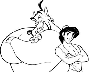 Kolejna bardzo fajna kolorowanka z kategorii Alladyn. Na obrazku widzimy Alladyna z Ginem. Odkąd się poznali stali się dobrymi...