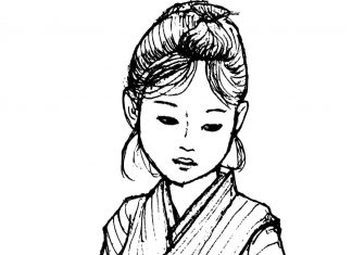 Zobaczcie jaka śliczna dziewczynka! Ciekawe w co jest ubrana – to kimono! Tradycyjne japońskie ubranie. Jedyne czego brakuje to...